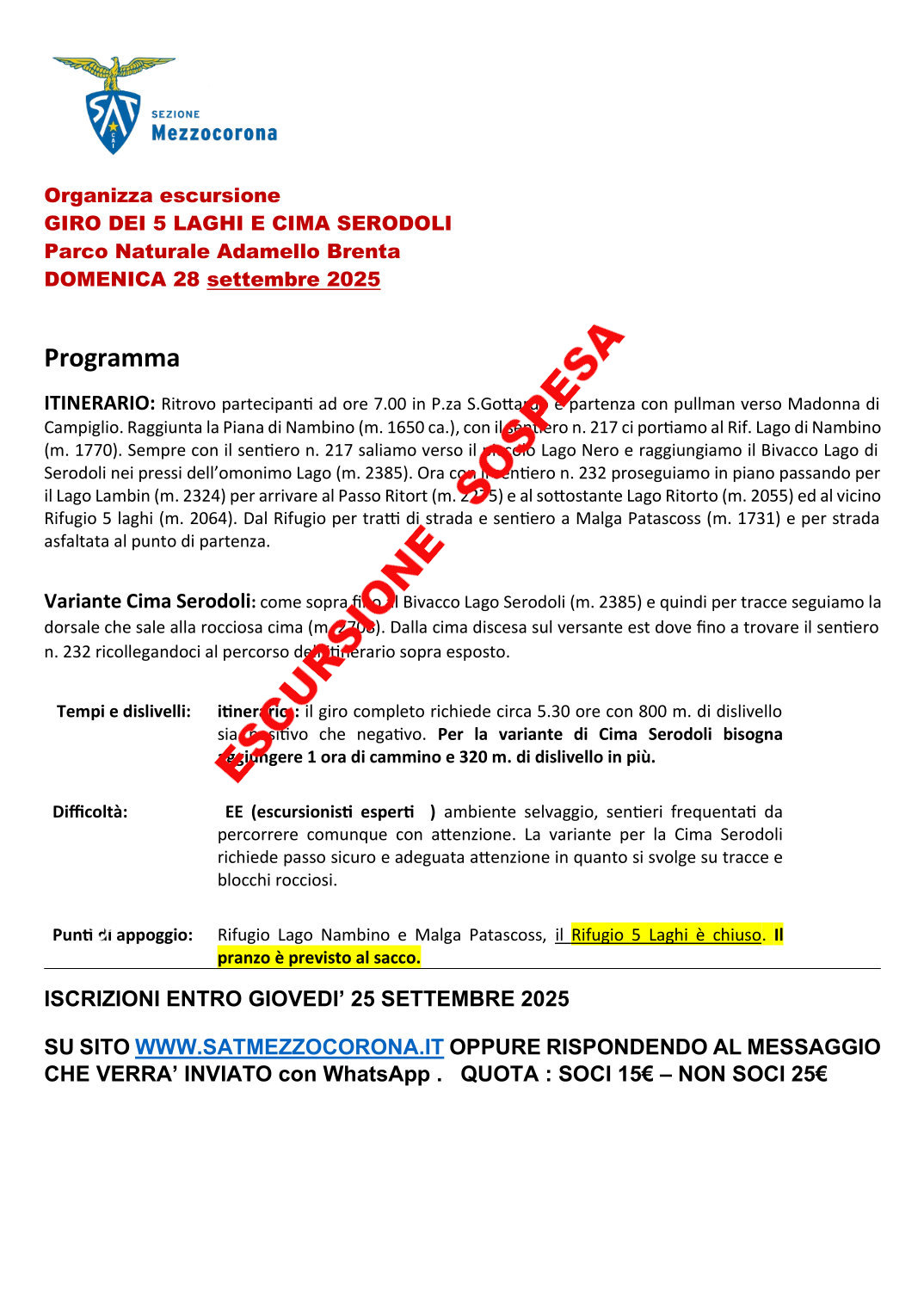 Escursione Cima Serodoli SOSPESA PER NEVE
